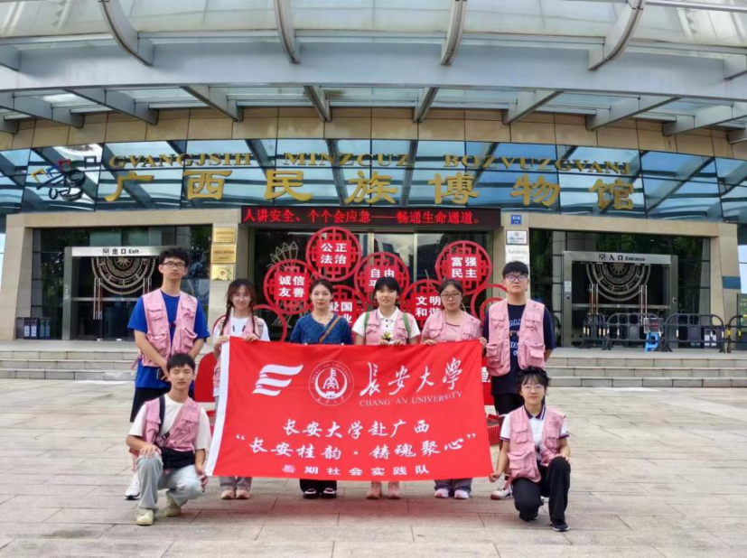 为深入学习贯彻习近平总书记关于铸牢中华民族共同体意识的重要思想,积极引导学生在社会实践 活动中凝聚团结力量、厚植家国情怀,7月23日至29日,williamhill体育在线登录赴广西“长安桂韵•铸魂聚心”暑期社会实践队在指导老师姜雨彤的带领下赴南宁、柳州、桂林开展了丰富的实践活动。