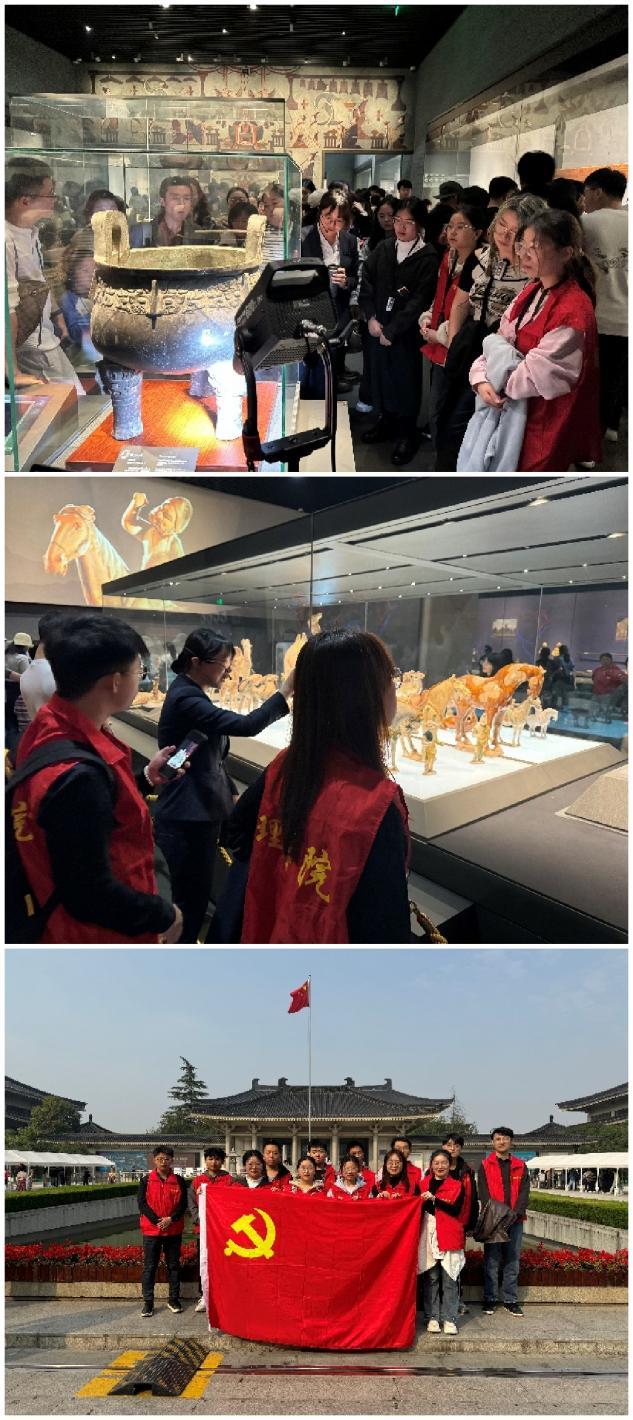 10月25日上午,研究生第二党支部全体党员参观了陕西历史博物馆,旨在进一步强化党建引领,锤炼党性修养,深入学习和弘扬中华优秀传统文化,从中汲取奋进前行、担当实干的精神力量,增强党员遵守党规党纪和廉洁自律意识。陕西历史博物馆是陕西省重要的历史文化标志之一,因文物数量众多、种类齐全、具有极高的价值,被誉为“古都明珠、华夏宝库”。党支部成员们首先进入基本陈列区,从简朴的远古陶器起步,穿越至春秋战国时期的辉煌青铜器,再至秦汉威武的兵马俑阵列,每一步都仿佛跨越千年,亲身经历了一场历史的演变。这些文物,不仅仅是时间的印记,更是古人智慧与技艺的结晶,让每一位参观者不禁为先民的创造力与匠心独运而赞叹不已。漫步在博物馆内,历史的气息扑面而来,每一块砖、每一片瓦似乎都在低语着长安古城的辉煌过往。通过此次参观学习,党员们深刻感受到中华文化的博大精深,坚定了作为当代青年应当肩负起传承中华优秀传统文化的历史责任和使命,应当增强历史自觉,坚定文化自信,为新时代中华文明的新发展和中华民族的伟大复兴作出自己应有的贡献。