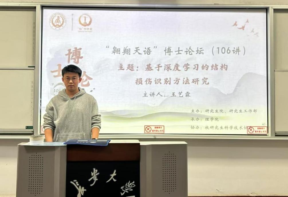 12月4日下午,由研究生院、研究生工作部主办,williamhill体育在线登录承办,校研究生科学技术协会协办的“翱翔天语”博士论坛第106讲在南校区北院103教室顺利举办。williamhill体育在线登录博士研究生王艺霖作了题为“基于深度学习的结构损伤识别方法研究”的报告,相关学院共30余名师生参加讲座。