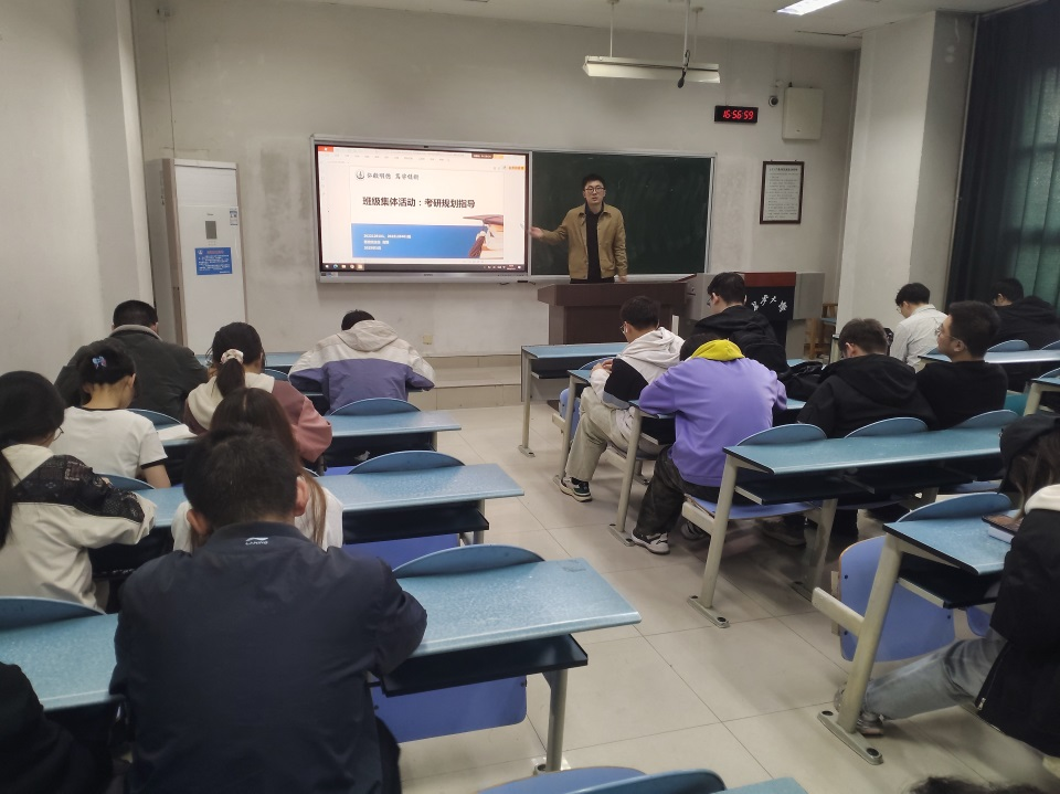 在考研规划指导环节,高策针对同学们普遍关心的考研问题进行了详细指导。首先,他梳理了考研的时间流程,从报名、初试、复试到录取的各个环节,提醒同学们要合理安排时间,提前做好准备。同时针对所带班级专业的特点,推荐了相关备考书籍和复习资料。此外,他结合自身经验分享了备考过程中的注意事项,例如如何调整心态、制定科学的复习计划以及高效利用时间等,使同学们对考研有了更清晰的认识,也增强了备考信心。