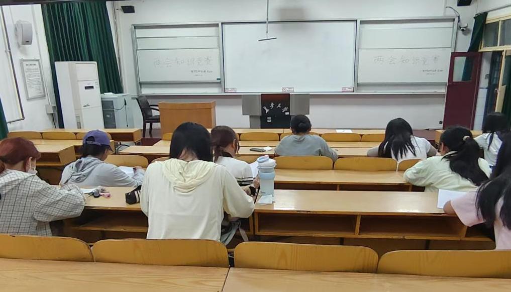 本次竞赛采取闭卷笔试形式,内容涵盖政府工作报告核心内容、两会热点议题及重要政策解读,重点考察同学们对“新质生产力”“高质量发展”“科教兴国战略”等关键概念的理解。竞赛现场秩序井然,参赛选手沉着作答,充分展现了同学们扎实的理论素养和积极的学习态度。经过严格评审,洪丹丹、马润欣、朱蒙蕊三位同学凭借优异成绩荣获竞赛优秀奖。吴文哲在总结中指出,本次活动通过“以赛促学、以学促行”的形式,有效检验了前期理论学习成效,后续将持续创新学习形式,推动两会精神走深走实。