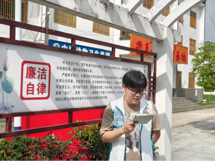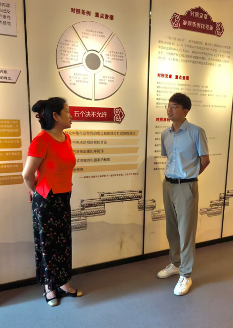在青山社区廉洁文化长廊,实践队系统学习了中央八项规定精神,通过沉浸式参观学习,同学们进一步强化了纪律意识和规矩意识。