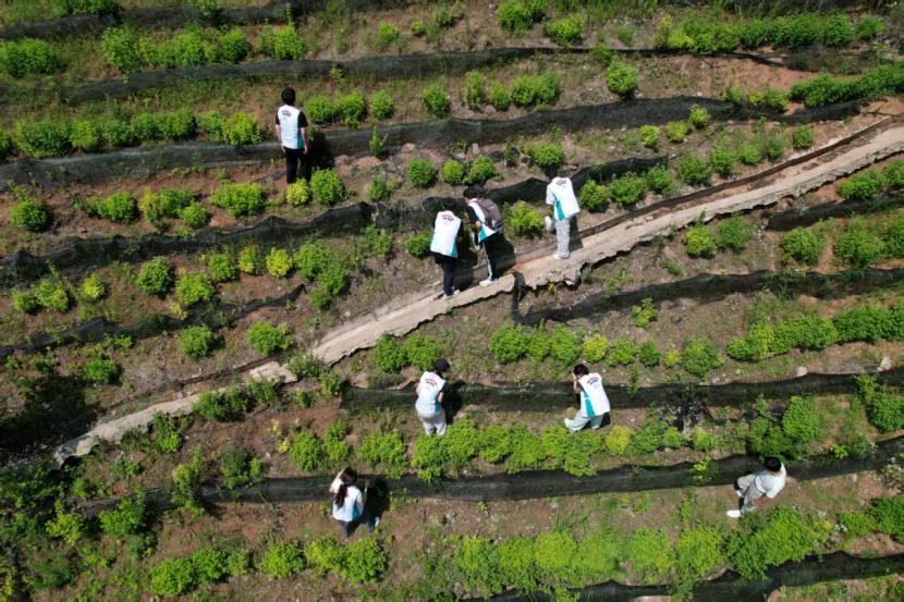 实践队进入茶海公园进行实地考察,队员们仔细观察茶树生长状况,认真记录茶叶长势和种植密度,详细查看土壤条件和周边生态环境,对商南县茶叶的生长习性和品质特征有了直观认识。