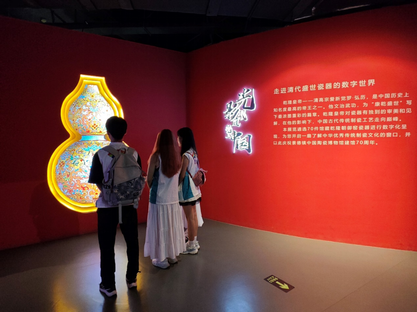 在陶阳里历史文化街区,实践队先后参观南麓遗址、明清窑作群,通过数字化展示装置了解遗址信息,与非遗传承人深入交流,了解制瓷技艺流程。在景德镇中国陶瓷博物馆,实践队通过AI智慧导览定位识别展品,了解陶瓷文物的历史价值和艺术成就,队员们通过3D扫描与触控系统的数字化展示装置,在屏幕上旋转、缩放文物的3D模型,观察陶瓷文物的细节特征和工艺特色。在景德镇陶瓷研究院,实践队与研究院副院长张良君等交流,全面了解景德镇陶瓷文化数智化发展情况,实地参观数智化展厅,了解到研究院和相关企业通过时域技术扫描陶瓷文物,将文物的细节以数据的形式存储下来,建立陶瓷文化遗产数字资产版本库,为陶瓷文物的修复、传承和保存提供技术支撑。
