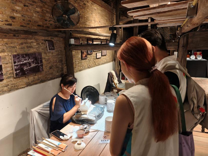 在央视网·瓷直播基地,实践队实地学习了央视网·瓷以数字技术为纽带,全面激活“央视访谈、直播带货、高端研学、文创选品、文化交流”五大业务板块,构建“产学研销展”为一体的陶瓷全产业生态链,利用数智技术提升景德镇陶瓷文化的传播力、影响力。央视网·瓷作为央视网旗下的非遗文化传播者,专注于挖掘展示陶瓷等非遗项目及代表性传承人的魅力,已吸引超过20万粉丝关注。在陶溪川文创街区,实践队通过走访了解到陶瓷个体商户通过线上直播宣传陶瓷产品进而吸引消费者。抖音直播、线上旗舰店等正在成为当地企业销售陶瓷产品的新渠道。