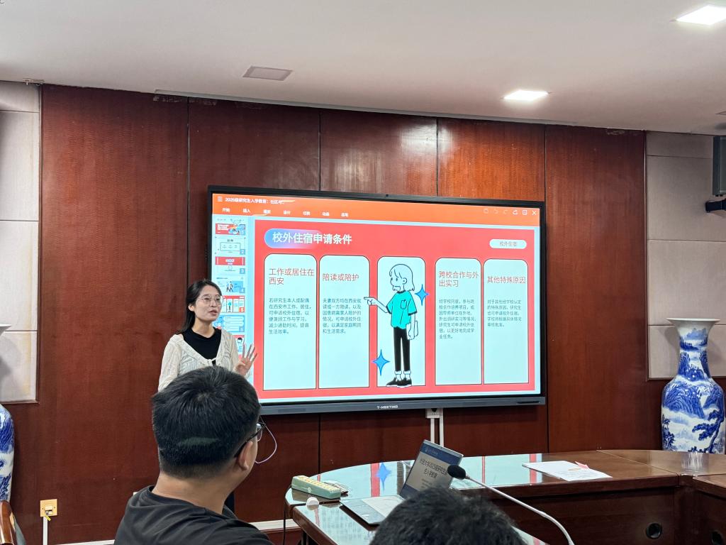 为帮助新生尽快适应校园和宿舍生活,妥善解决宿舍居住、安全及人际沟通等方面的问题,共同营造安全、文明、温馨的宿舍环境,9月1日,williamhill体育在线登录在南校区北院学术交流中心第五会议室组织了2025级研究生新生教育——学生社区管理暂行办法专项教育活动。本次会议由研究生辅导员周小娟主讲,2025级全体研究生参加。