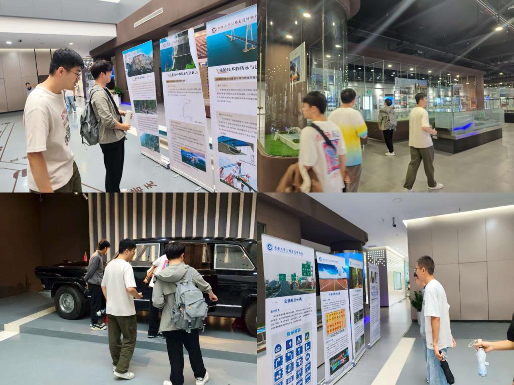 随后,新生们来到交通馆参观。一进入展厅,浓厚的交通科技氛围便扑面而来。从古代栈道、车马等传统交通形式,到现代智能交通系统、先进施工工艺,再到港珠澳大桥等举世瞩目的超级工程模型,展览全方位呈现我国交通事业从古至今的跨越式发展。馆内陈列的智能检测设备、桥梁健康监测系统等前沿科技展品,迅速吸引了同学们的注意。大家纷纷驻足观看,认真聆听讲解,并不时提问,与讲解员积极互动。通过讲解员深入浅出的介绍,同学们对交通科技的创新发展有了更直观和深入的认识,不仅拓宽了专业视野,也增强了对所学专业的认同与自豪。