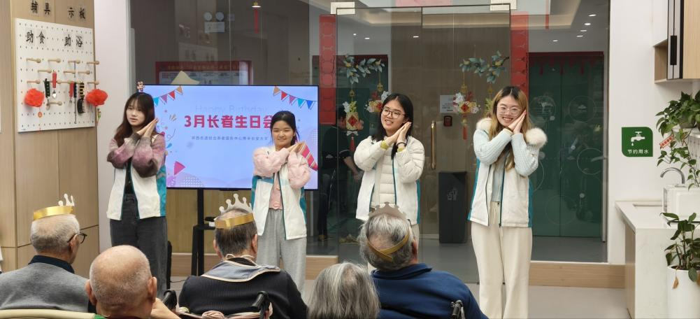为深入践行社会主义核心价值观,大力弘扬雷锋精神与中华民族敬老爱老的传统美德,在三月学雷锋志愿服务月的浓厚氛围中,用实际行动传递青春温暖。3月15日,williamhill体育在线登录青年志愿者服务队的24名志愿者怀着赤诚之心,走进环西街道综合养老服务中心,开展主题生日会公益活动。