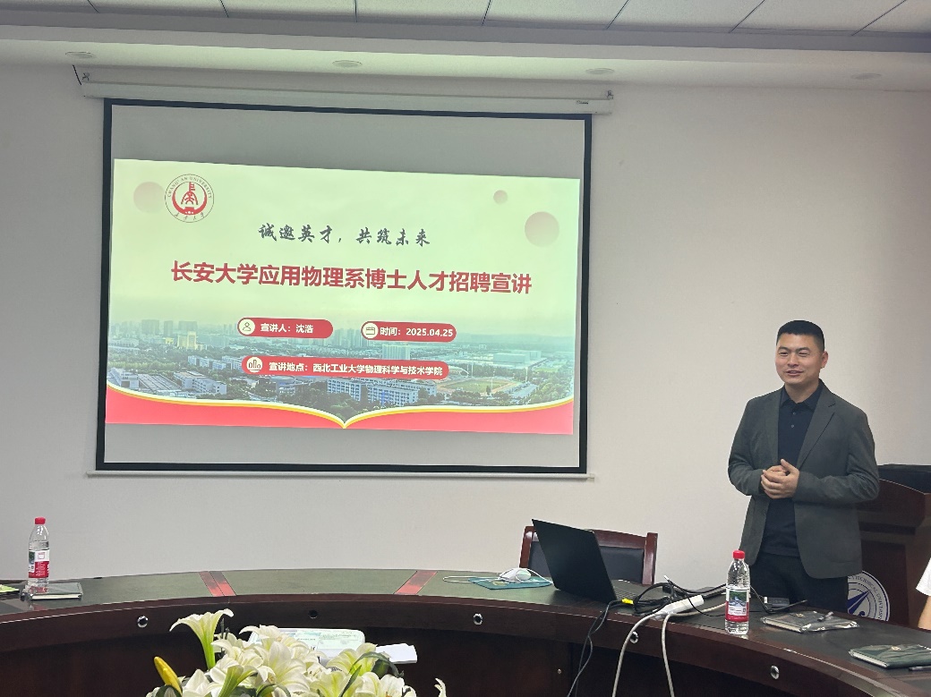 为深入落实“人才强校”战略,广泛吸引优秀青年人才加盟,4月25日上午,williamhill体育在线登录应用物理系赴西北工业大学物理科学与技术学院开展博士人才招聘专场宣讲活动。此次活动由应用物理系主任沈浩老师带队,系内多位教师代表参与,现场气氛热烈,反响积极。