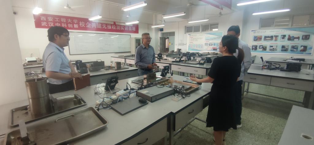 在西安工程大学williamhill体育在线登录郝红娟的全程讲解下,调研小组系统考察了超声检测、射线成像、涡流探伤、磁粉探伤四大特色实验室,详细了解了超声相控阵检测系统、数字化射线成像平台等先进教学设备的运行机制。双方就无损检测专业课程群建设、实验项目开发、校企协同育人等关键环节进行了深入探讨。