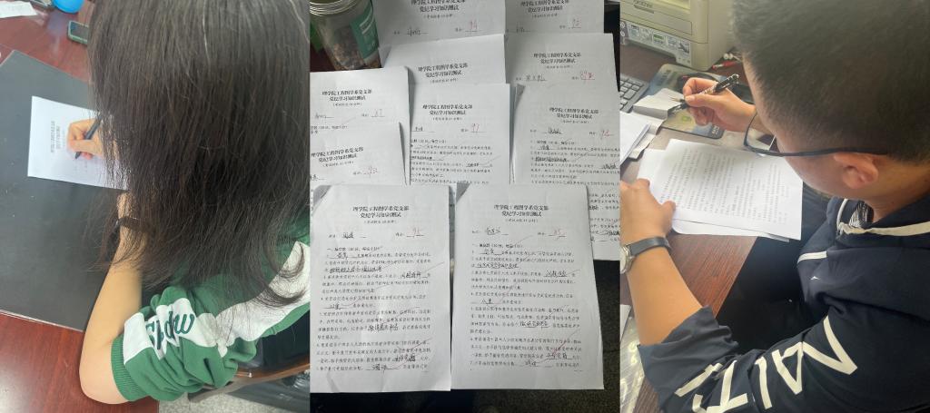 每位党员都积极参与、热情高涨,通过对卷面成绩的统计,最低分85、最高分98,70%的人都在90分以上。