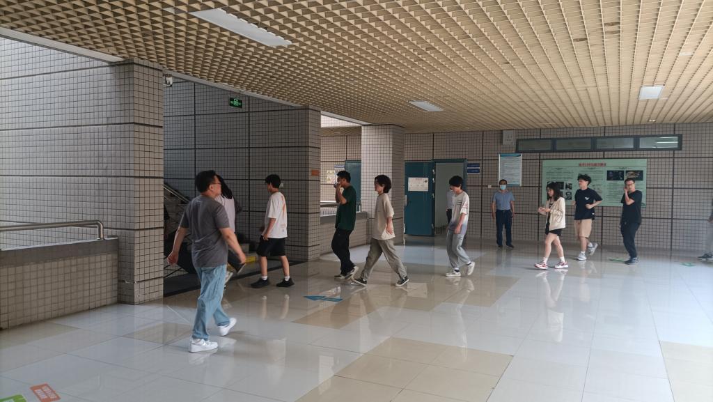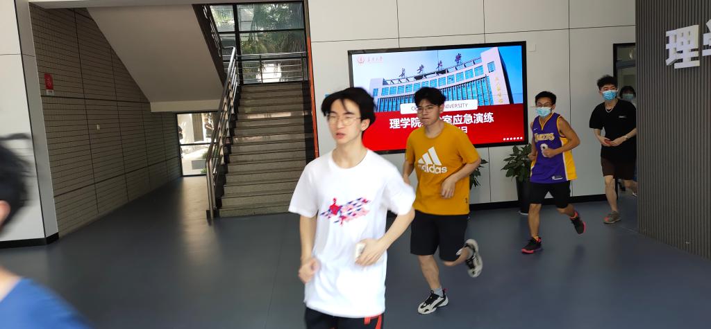 本次演练活动以实验室突发应急安全事件为模拟背景,演练内容主要是师生在紧急情况下的疏散撤离和处突组织能力,演练时间随机选定。上午1050,假想实验室突发应急事件,安全员立即吹哨示警,并利用喇叭提示大楼内师生立即有序撤离。正在进行实验课教学的师生分别从大楼一层、四层、五层教室撤离,从就近逃生通道有序疏散,快速通过大楼门厅至楼前空地集合并清点人数,参加演练师生全部安全撤离仅用时1分50秒,演练活动取得圆满成功。