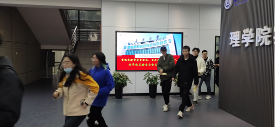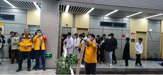 突发事件应急撤离演练以实验室突发应急安全事件为模拟背景,演练内容为师生在紧急情况下的疏散撤离和应急组织能力,演练时间随机选定。下午14:30,假想实验室突发紧急事件,安全员立即吹哨示警,并利用喇叭提示大楼内师生立即有序撤离。正在进行实验课教学的师生分别从大楼各楼层教室选择就近逃生通道有序疏散,快速通过大楼门厅至楼前空地集合。经清点人数,所有参加演练师生全部安全撤离,全程用时2分09秒,演练活动取得圆满成功。