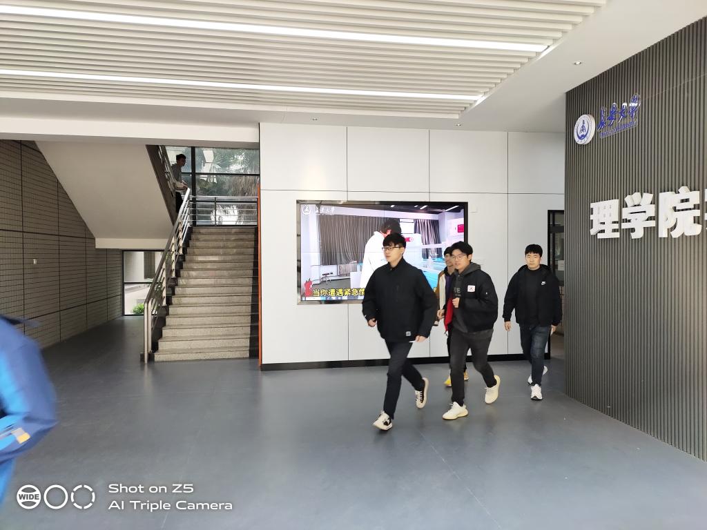 应急逃生演练以实验室突发紧急安全事件为模拟背景,演练内容为师生在应急情况下的疏散撤离和应急组织能力,演练时间随机选定。下午14:30,假想实验室突发紧急安全事件,安全员立即吹哨示警,并利用喇叭提示楼内师生立即有序撤离。正在进行实验教学的师生分别从大楼各楼层选择就近逃生通道有序疏散,快速到达楼前空地集合。经清点人数,所有参加演练师生全部安全撤离,全程用时2分12秒,应急逃生演练活动取得圆满成功。
