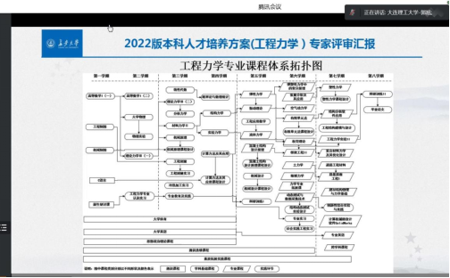 商泽进首先介绍了我校优化2022版本科人才培养方案的精神和要求,尹冠生就2022版工程力学专业培养方案修订小组自7月8日以来的各项工作做了整体介绍,接着工程力学专业责任教授石晶详细汇报了我校2022版工程力学专业培养方案以及编制过程中的一些问题。