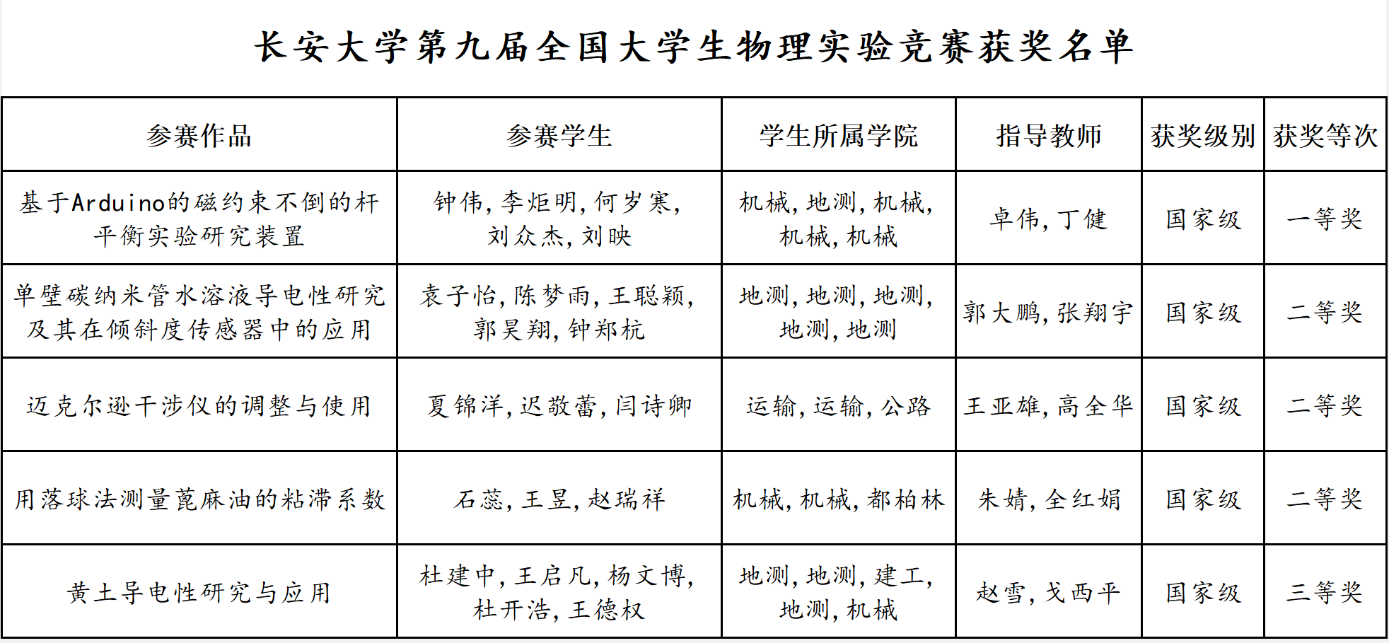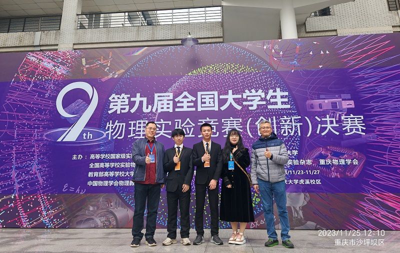 11月26日,2023年第九届全国大学生物理实验竞赛(创新)决赛在重庆大学落幕。我校5支代表队在国赛中斩获佳绩,获一等奖1项、二等奖3项、三等奖1项。