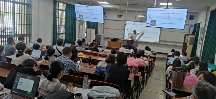 2025 年 5 月 7 日下午,学院与教育研究与评估中心联合学堂在线慕课平台在南校区北院 B103 教室举办题为 “AI 教学平台应用及智慧课程建设” 的工作坊培训活动,旨在探索人工智能赋能教育教学的解决方案,推动智慧课程建设迈向新台阶。工作坊活动共有来自全校15个学院的80余位教师参与,学院副院长徐春龙主持活动。