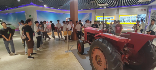 在中国一拖东方红农耕博物馆,实习师生参观了反映我国农业机械化从原始萌芽到蓬勃发展整个过程的展览,仿佛开启了一场穿越时空的工程旅程。在新中国第一台东方红拖拉机的复原模型前,随着讲解员深入浅出的解说,同学们领悟到从犁铧精准受力分析,到拖拉机传动系统精妙绝伦的优化,力学原理如同灵动的血脉,贯穿于农机技术革新的每一次迭代升级,为农业现代化注入源源不断的动力,深刻感受到工程力学在农机具设计中无可撼动的核心地位。