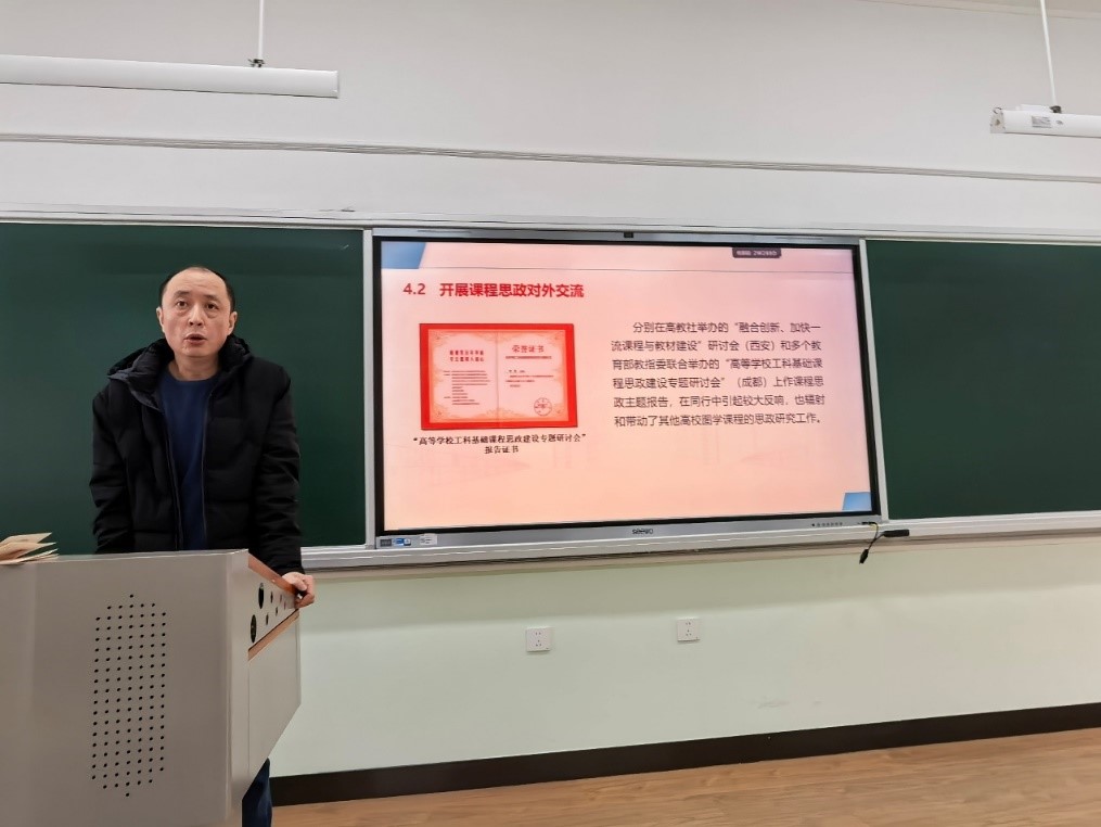 2025 年 12 月 29 日 下午,学院在南校区北院B201教室举行 “双万计划”(一流课程)系列报告(九),邀请西北工业大学机电学院叶军副教授作题为 “守成创新 笃行致远 —— 西北工业大学制图课程建设综述”的交流报告,学院40余位老师参加,报告会由副院长徐春龙主持。