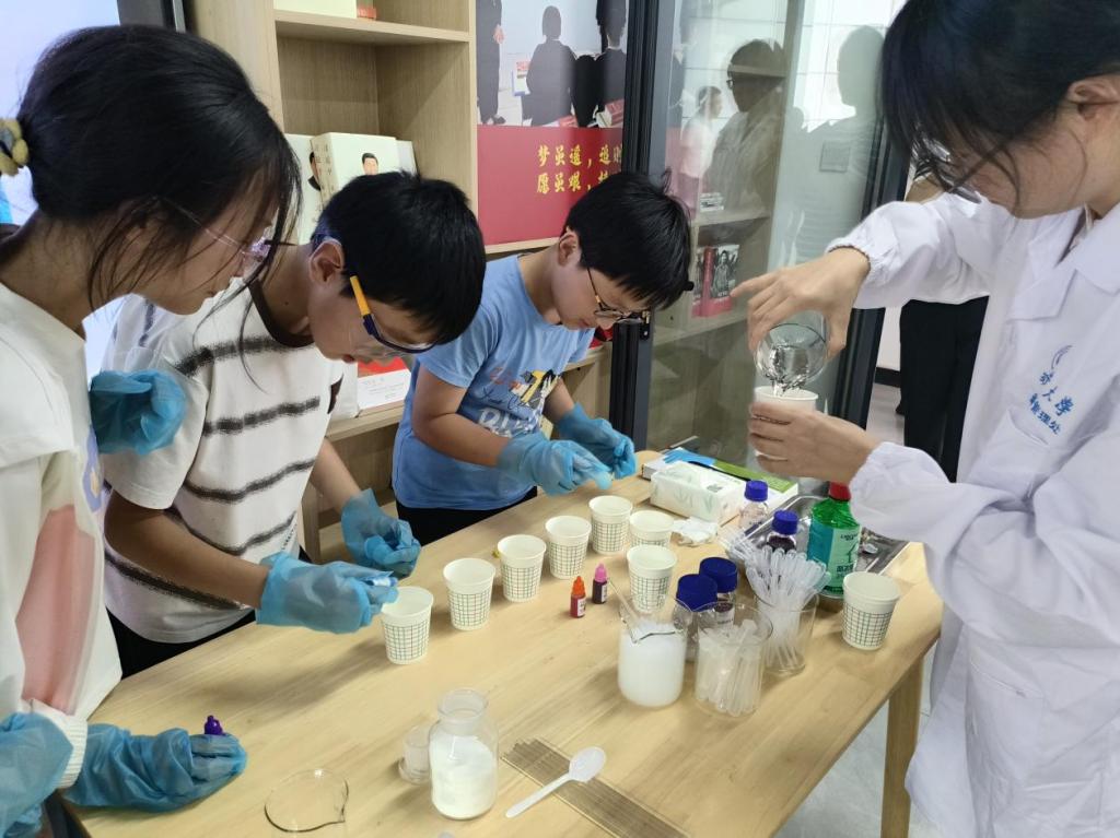 “学习书屋”,williamhill体育在线登录化学与材料科学系青山镇中心学校的学生代表带来了“化学神奇世界:探索科学奥秘”主题科普实验演示,教师们通过“大象牙膏”、“下雪啦”高锰酸钾褪色实验、烧杯里的“时光机”趣味互动环节,带领孩子们观察“高锰酸钾褪色”“聚丙烯酸钠吸水膨胀碘钟与BZ振荡反应周期变化奇妙化学现象。实验间隙,机关党委组织了爱国主义教育知识竞答通过单选、简答等形式激发学生参与热情,并向优胜者发放活动奖品。这种“科学实验+红色教育”的双轨模式,既通过沉浸式实操体验激发学生对科学的探索欲,又以知识竞答厚植家国情怀,实现“科创启智”与“立德树人”的深度融合。