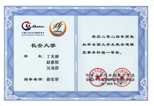 数学建模全国一等奖证书