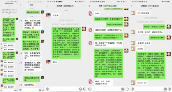 分片管理,关爱师生。划分学生、南校区家属院、北校区家属院、校外等4个片区,及时关注片区人员的最新动态,为片区师生提供日常帮助、心理疏导等,引导师生遵守好所在社区的防控规定和要求。抽调青年骨干教师担任临时班主任,充分发挥辅导员、研究生导师、班主任、思政班主任和临时班主任作用,通过线上、微信、电话等方式,与学生沟通交流,及时了解学生学习生活中遇到的困难,指导和关心学生学业,开展心理疏导服务,宣传疫情防控知识,引导学生正确理解、积极配合、科学防控,增强战胜疫情的信心和力量。